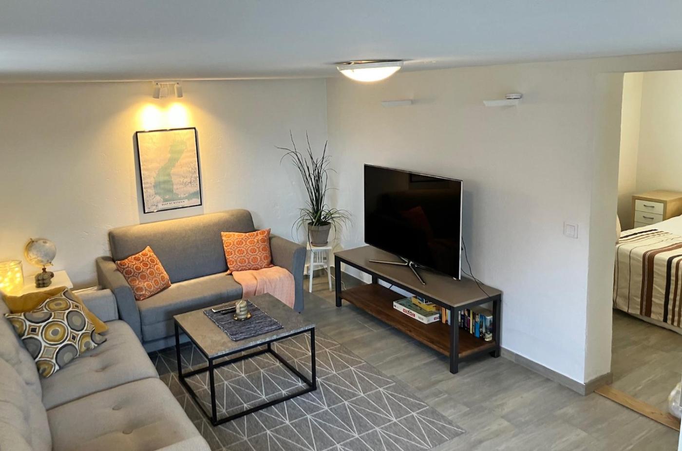 One-Bedroom Apartment. Featuring a private entrance, this apartment consists of 1 living room, 1 separate bedroom and 1 bathroom with a walk-in shower and a hairdryer. The well-equipped kitchen features a stovetop, a refrigerator, a dishwasher and kitchenware. The apartment provides a washing machine, a tea and coffee maker, a seating area, a flat-screen TV with streaming services, as well as garden views. The unit offers 2 beds.