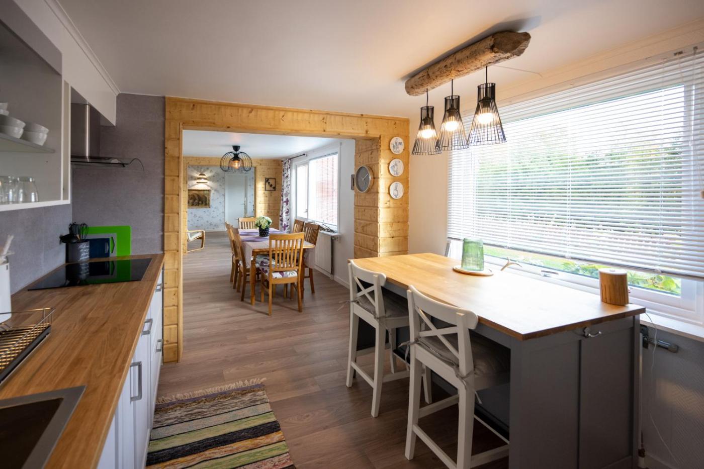 One-Bedroom House. This holiday home consists of 1 living room, 1 separate bedroom and 1 bathroom with a shower and free toiletries. The holiday home provides a washing machine, a tea and coffee maker, a dining area, a flat-screen TV, as well as lake views. The unit offers 1 bed.