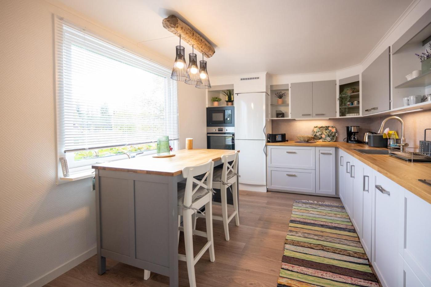 Two-Bedroom House. This holiday home is comprised of 1 living room, 2 separate bedrooms and 1 bathroom with a shower and free toiletries. Guests will find a stovetop, a refrigerator, a dishwasher and kitchenware in the kitchen. The holiday home also has a barbecue. The holiday home offers a flat-screen TV, a washing machine, a tea and coffee maker, a dining area as well as garden views. The unit offers 3 beds. ;