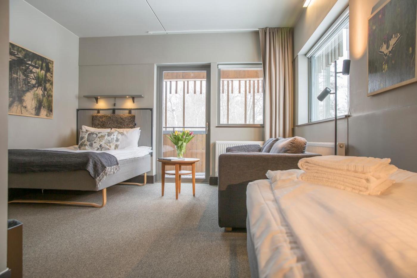 Standard Family Room. This naturally furnished room includes a balcony and a tiled bathroom with shower and hairdryer. It offers views of either the forest, castle or the Vänern Archipelago.
