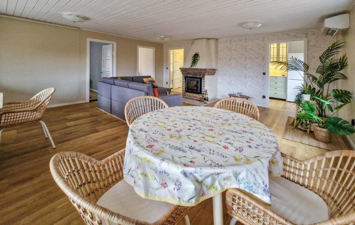 Two-Bedroom Holiday Home. Guests will have a special experience as the holiday home features a fireplace. Featuring a private entrance, this air-conditioned holiday home consists of 1 living room, 2 separate bedrooms and 1 bathroom with a shower. Guests will find a stovetop, a refrigerator, kitchenware and an oven in the kitchen. The holiday home also offers a barbecue. The holiday home provides a washing machine, a tea and coffee maker, a dining area, as well as outdoor furniture. The unit offers 4 beds and 2 futons.