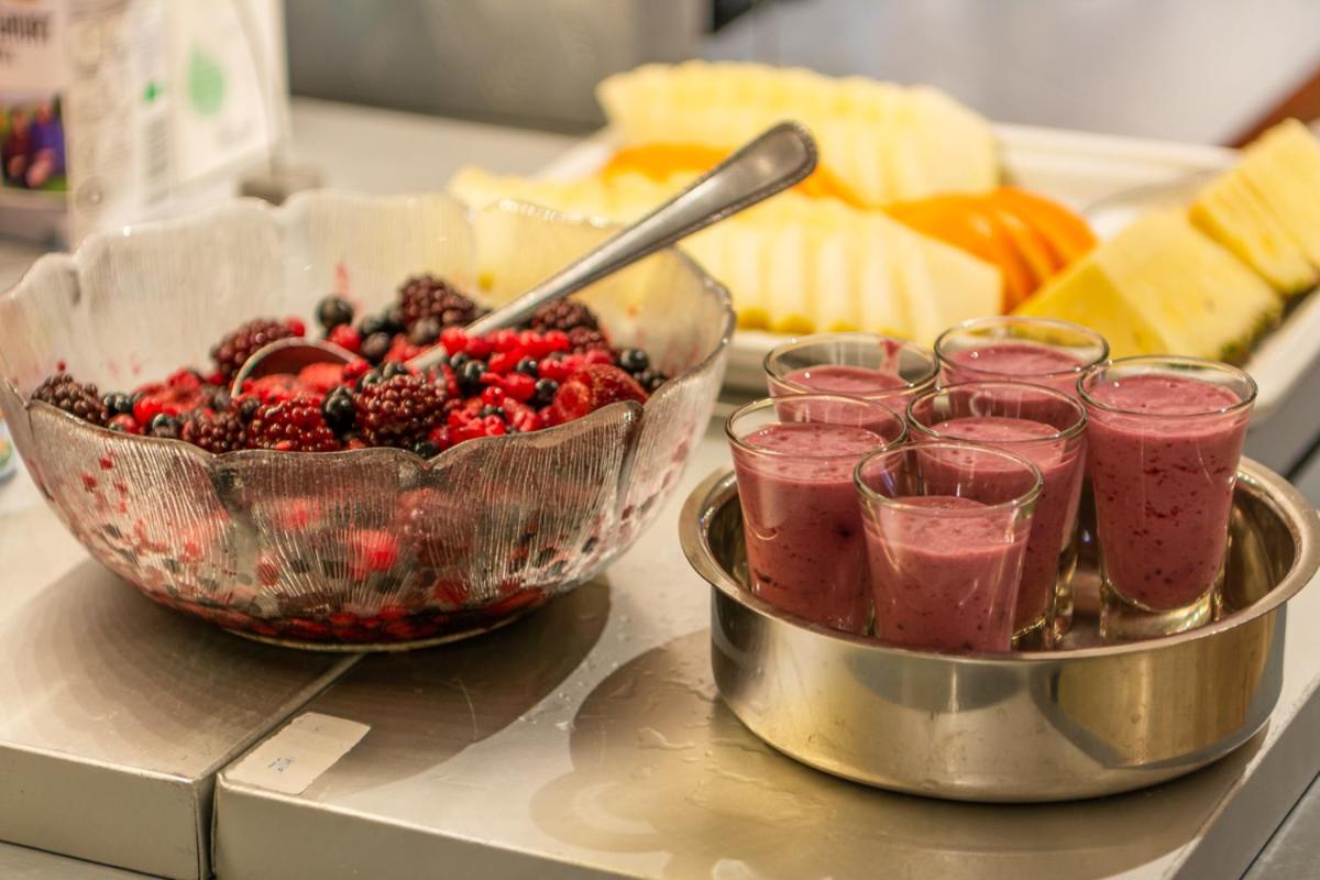 The breakfast room also acts as a small art gallery. Guests can admire the work while enjoying a varied buffet breakfast with a wide range of mueslis, bread and cheeses.