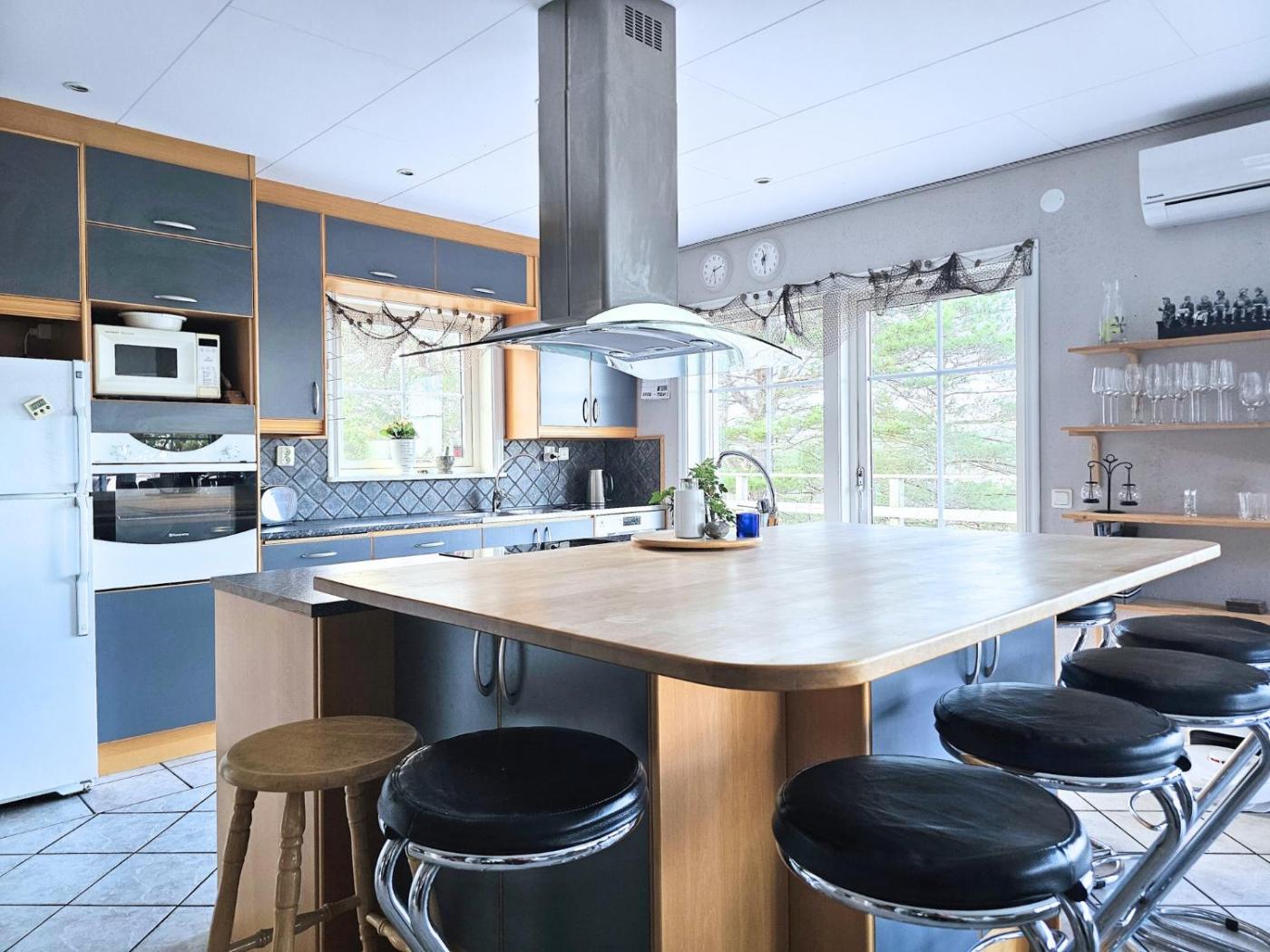 Holiday Home. This holiday homes special features are the sauna and the fireplace. Guests will find a stovetop, a refrigerator, a dishwasher and kitchenware in the kitchen. The holiday home also provides guests with a barbecue. The spacious holiday home provides a washing machine, a private entrance, a terrace with sea views as well as a private bathroom featuring a shower.