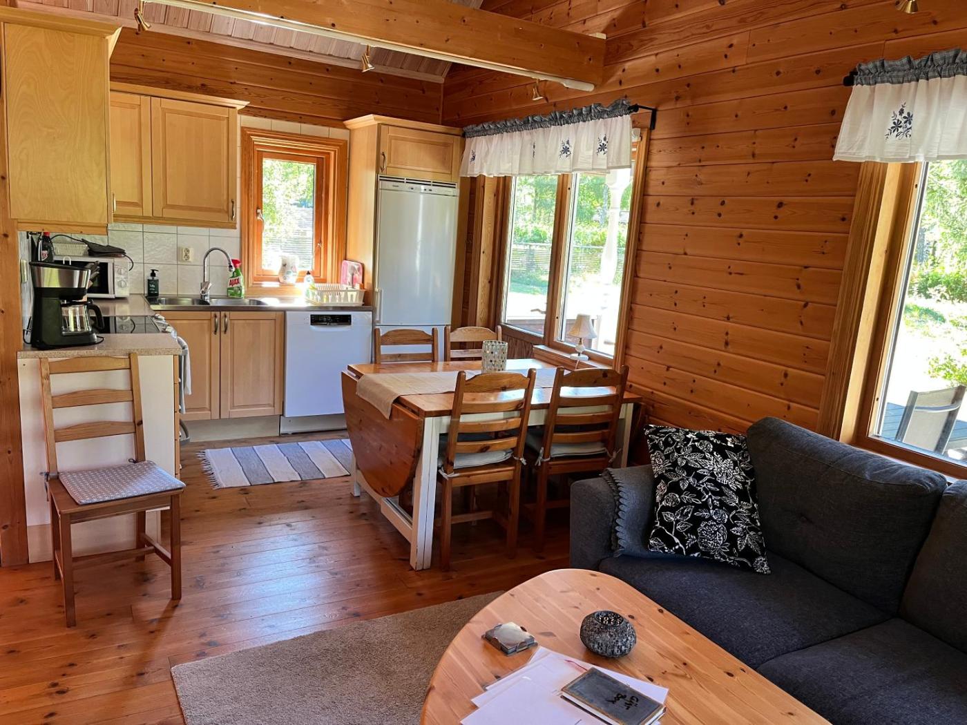Holiday Home. This holiday home offers a sauna. Featuring a private entrance, this air-conditioned holiday home comprises 1 living room, 2 separate bedrooms and 1 bathroom with a walk-in shower and a bath. Guests will find a stovetop, a refrigerator, a dishwasher and kitchenware in the fully equipped kitchen. The holiday home also provides guests with a barbecue. Boasting a terrace with garden views, this holiday home also provides a washing machine and a flat-screen TV with streaming services. The unit offers 3 beds.
