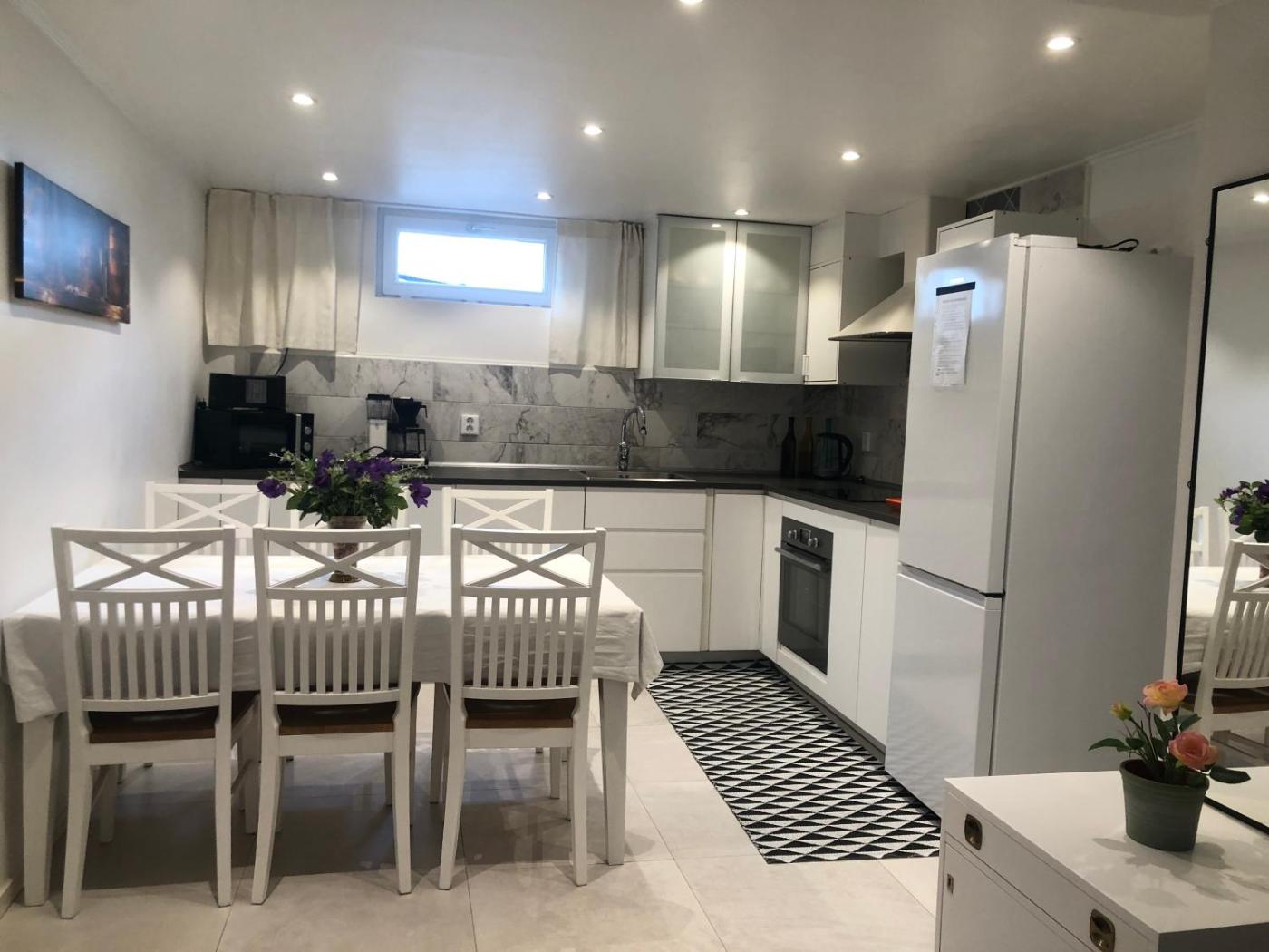 Three-Bedroom Apartment. Guests will have a special experience as this apartment provides a sauna. Guests will find a stovetop, a refrigerator, a dishwasher and kitchenware in the kitchen. The apartment also has a barbecue. The spacious apartment offers a washing machine, a private entrance, a terrace with garden views as well as a shared bathroom featuring a shower. The unit offers 4 beds.