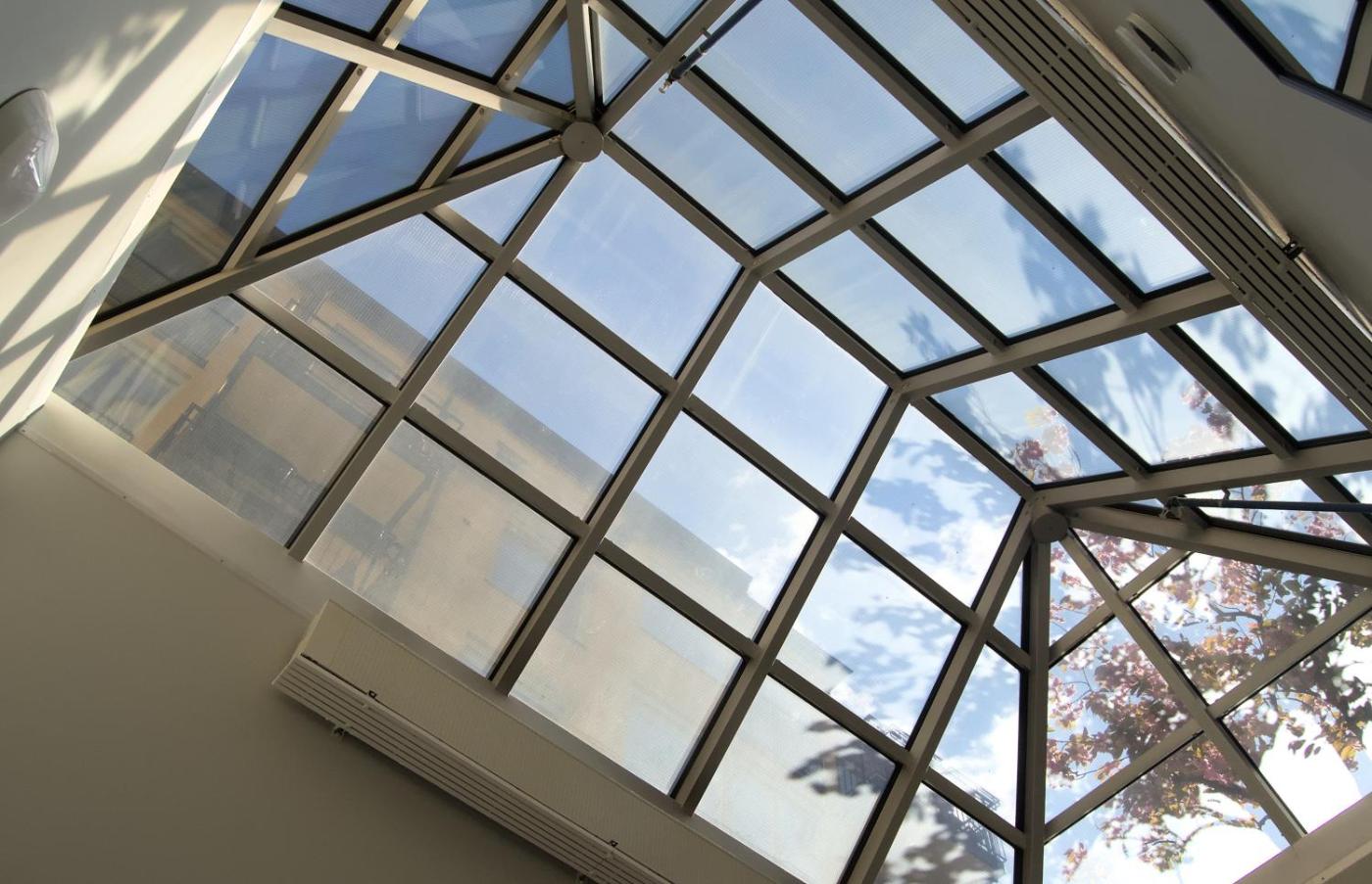 Large Double Room with Shared Bathroom - Sky Window. The double room offers a seating area and a wardrobe, as well as a shared bathroom featuring a shower. The double room features a sofa, a carpeted floor and heating. The unit offers 1 bed. ;