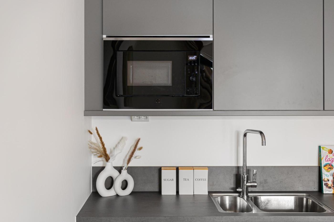 One-Bedroom Apartment. Boasting a private entrance, this apartment comes with 1 living room, 1 separate bedroom and 1 bathroom with a shower and a hairdryer. In the well-fitted kitchen, guests will find a stovetop, a refrigerator, a dishwasher and kitchenware. The apartment features a flat-screen TV with streaming services, a washing machine, soundproof walls, a tea and coffee maker as well as garden views. The unit has 2 beds.