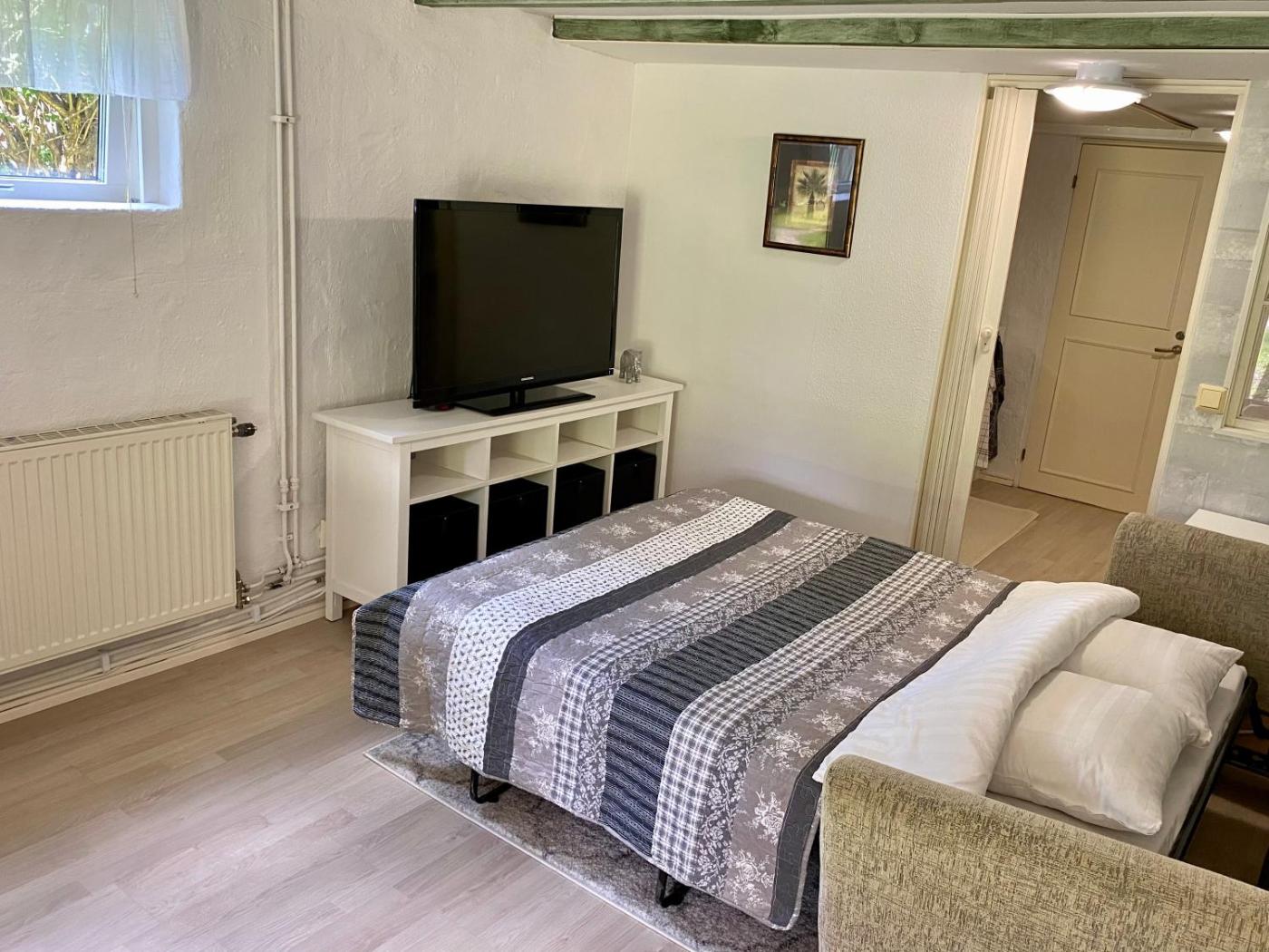 One-Bedroom Apartment. Featuring a private entrance, this apartment is comprised of 1 living room, 1 separate bedroom and 1 bathroom with a bath and a shower. The well-equipped kitchenette features a stovetop, a refrigerator, kitchenware and a microwave. Boasting a terrace with garden views, this apartment also offers a washing machine and a flat-screen TV. The unit offers 2 beds.
