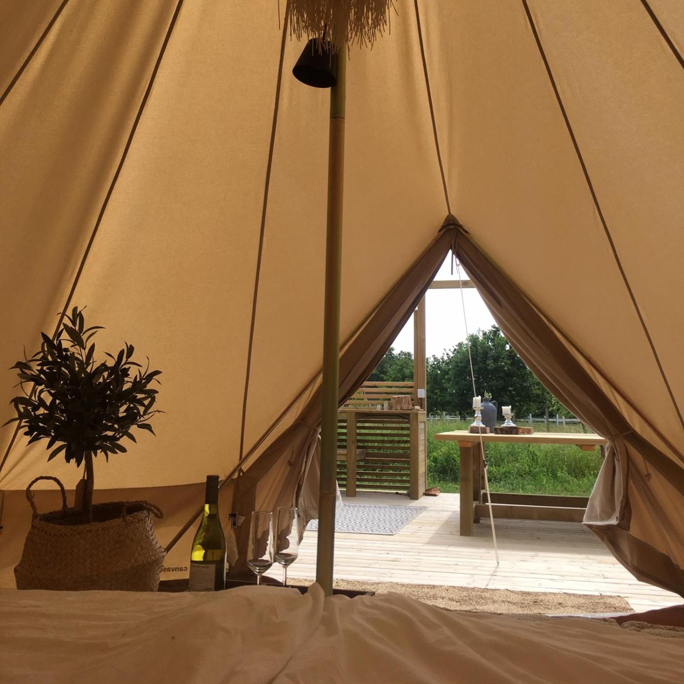 Tent. This luxurious tent features a private pool, a hot tub and a sauna. Offering bathrobes, this tent includes a private bathroom with a shower. Guests will find a stovetop, a refrigerator, kitchenware and an oven in the kitchenette. The tent also has a barbecue. The tent offers a tea and coffee maker, heating, as well as a patio and an outdoor dining area. The unit offers 1 bed.