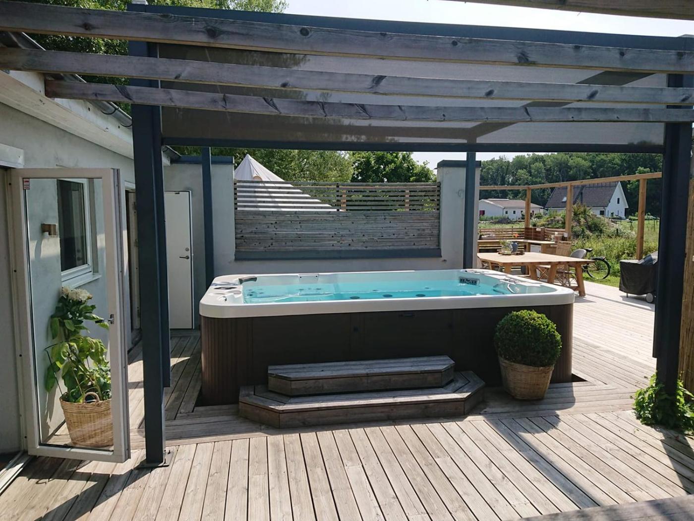 Boasting a sauna, Glamping i Döshult is situated in Viken. This luxury tent has a private pool, a garden and free private parking. The luxury tent has an outdoor fireplace and a sauna.
